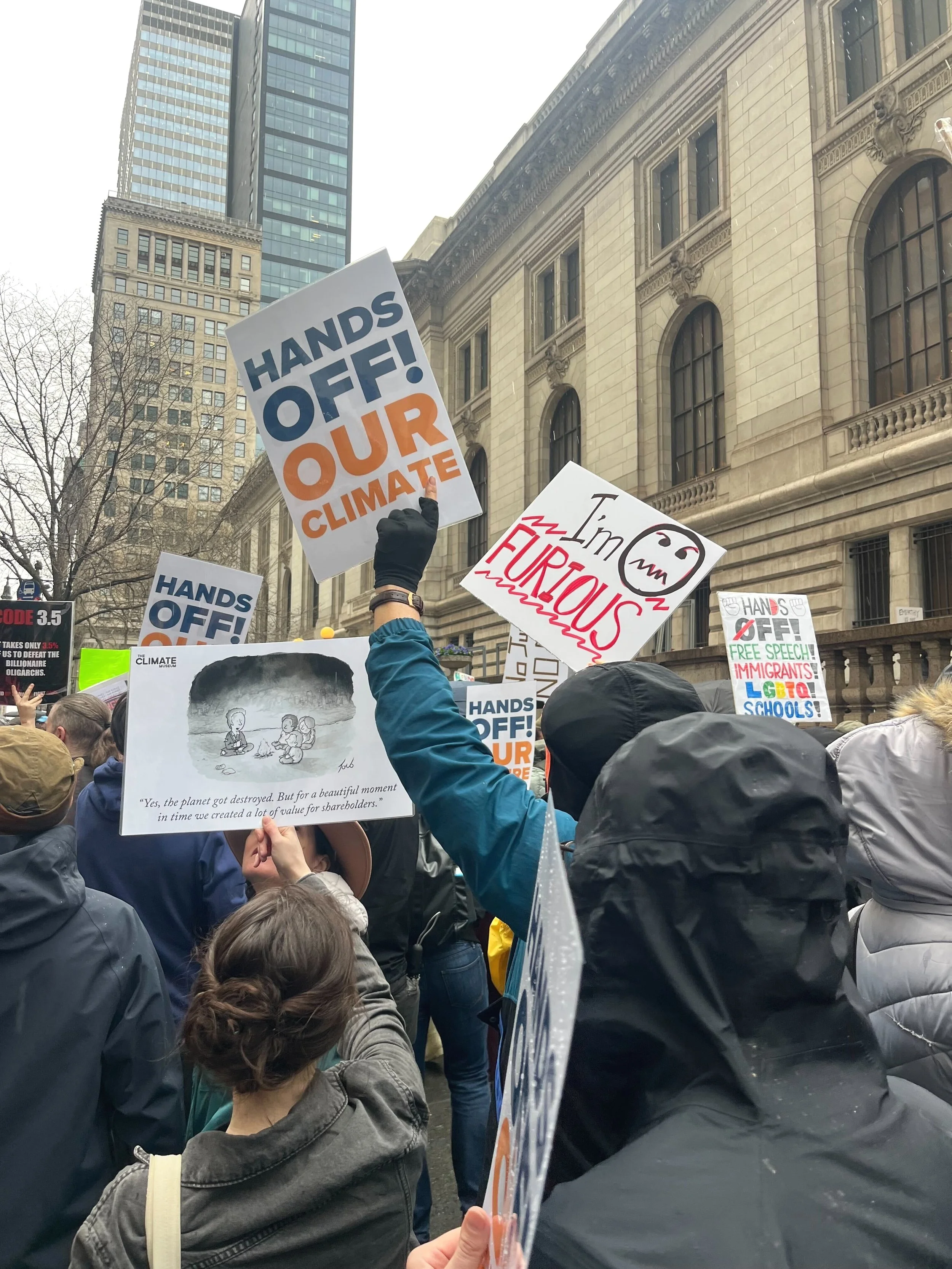 When the Climate Museum organizes a contingent, we offer a limited number of custom signs that are distributed on a first come, first served basis. You can also make and bring your own posters! Please remember that NYC law prohibits the use of wooden and other hard handles for protest posters.